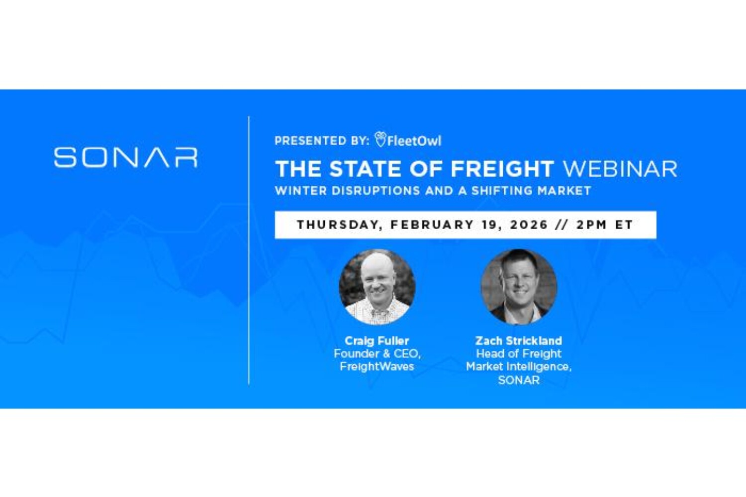 Craig Fuller, founder and CEO of FreightWaves, and Zach Strickland, head of freight market intelligence at SONAR will cover the impact of recent winter weather disruptions, whether the long-awaited market shift is finally here, and what freight data reveals about broader economic trends.